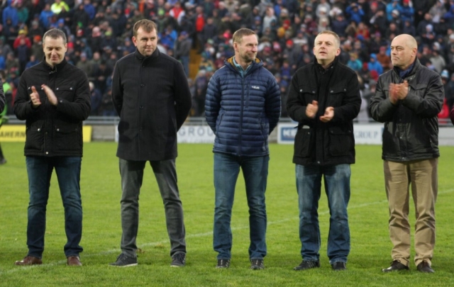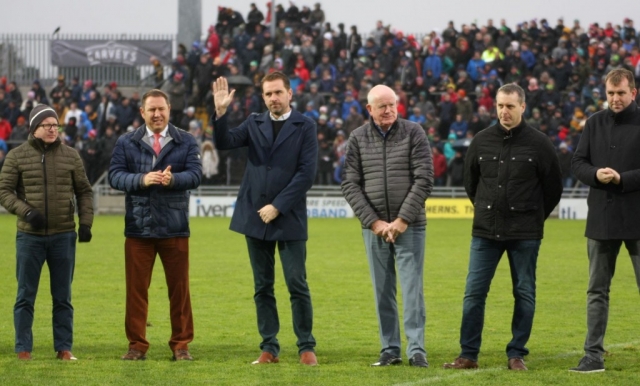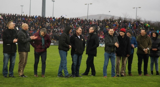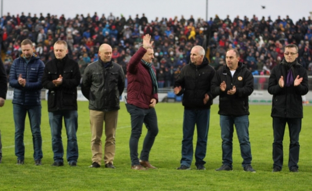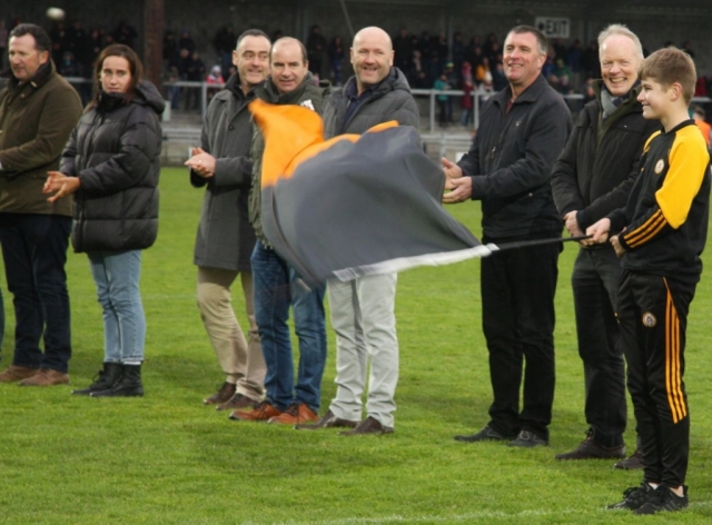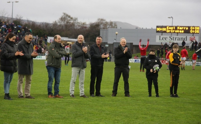 Then on Sunday, in Austin Stack Park, our 1994 Senior Panel were honoured by the Kerry Co. Board during half-time in the SF Co. Championship final and again it was great to see all those heroes of the past lead by our Flag Bearer, Barry Nagle (son of Malachy) and in particular to see Nicola Galvin among the group representing her late Dad, John Galvin.