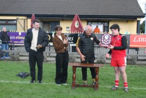 The Billy Breen Memorial Shield was contested by 2 Kerry teams – An Ghaeltacht and Kerins O’Rahillys, with an Ghaeltacht winning the match. Winning captain, D. O’Catháin was presented with the Shield by Lillian McMahon-Breen, Gavin Breen and Eamonn Scanlon (Austin Stacks). Man of the Match was Tomás O’Súilleabháin (An Ghaeltacht.)