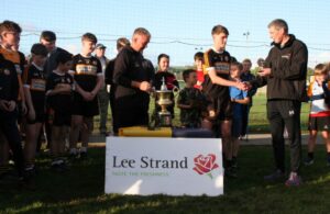 Finalists in the 2025 Lee Strand Cup competition were Austin Stacks who were victorious over a gallant Monaleen team. The final score was Austin Stacks 4-7 Monaleen 1-4. John Murphy (Operations Manager of Lee Strand) presented Billy Kirby of Austin Stacks with Man of the Match Award. Player of the Tournament was Austin Stacks player, Michael Carmody, and as captain, he received the Lee Strand Cup from Paul O’Connor, son of the late Denis O’Connor, in whose memory the tournament is named.