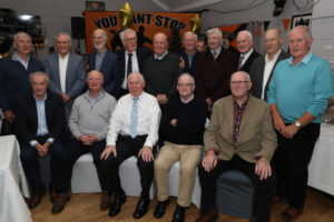 Members of the 1973 Senior County Champions celebrate their 50th anniversary in the Austin Stacks clubhouse on Saturday night. Seated l to r: Mikey Sheehy, Billy Curtin, Tommy Kennington, Tommy Parker and Mike McCarthy. Back l to r: Ger O’Keeffe, Ger Power, Fergus Dillon, Aidan O’Connor, Fintan Lawlor, Tommy King, Tommy O’Regan, John Barry, John O’Keeffe and Ger McNamara.