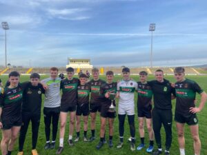 MOUNTHAWK – College Football: ‘Well done’ to the Mercy Mounthawk footballers who challenged and defeated their old rivals, Coláiste Bréanainn Chill Airne, in the final of the Kerry Colleges senior football competition in Austin Stack Park. With Rockmen in almost every line of the team they won a first Corn Uí Shúilleabháin competition for their school. Their winning margin was 0-6 and the scoreboard read 2-14 to 1-11. What a mighty effort/performance! Champions of Kerry: Michael Tansley (AdeS); G.Riordan (Ardfert), O.McGibney (C/hill), James Fisher (AdeS); Jack Murphy (AdeS), Ben Murphy (AdeS)(0-1), Pádraig O’Halloran (AdeS); Daniel Ó Ciarba (AdeS), Cian O’Gara (C/hill); N.Collins (B/mac)(0-1), O.Ferris (Ardfert)(0-1), S Corkery (JM); Paddy Lane (AdeS)(1-9; 6 frees, 1 ‘45), T.Ó Cinnéide (K-O’R)(0-2), Noah Townsend (AdeS)(1-0); B.Ó Géaráin (B/ville), J.Hoare (K-O’R), O.Murphy (C/hill), K.Sheehan (Gaeil). Is é Corn Uí Mhuirí atá go mór in aigne acu anois! (ii) The following U16½ Mounthawk Rock lads are hoping to win the Dunloe Shield (Kerry Colleges): Ben Litchfield, Harry Murphy, Ben Murphy, Alex Touhy, Cormac Bastible, Eoin Murphy, Liam Sweeney-O’Connor, Jay Sweeney-O’Connor, Jayden Moriarty, Jack Shanahan, Jack Diggin. This Corn Uí Shúilleabháin competition victory will give them great encouragement as they prepare for a quarter final game in January!