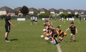 All action at the Austin Stack Club SUNDAY Academy in Caherslee. Boys and girls of The Rock….cailíní agus buachaillí na Carraige ag baint taitneamh as a gcuid peile Dé Domhnaigh seo caite. Everybody welcome again next Sunday ag 11am. Caherslee is the place to be……where the wearers of the Black’n’Amber develop and improve their skills with excellent coaching mentors and where they have fun with their friends! Bhí Adrienne ann lena ceamara.