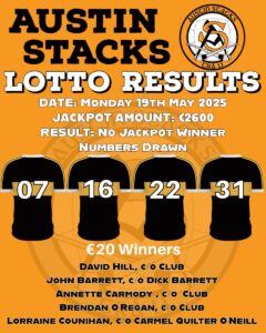 Club Lotto draw…where to try your luck: Siopa de Barra, Sráid na Carraige Uachtarach; Commane’s Bookshop (PC Books), Sráid na Carraige Láir; O’Flynn Interiors, Sráid na Carraige Íochtarach; Husseys, Newsagency, Cé an Phrionsa; Carmel Cuiltéir, AdeS; The Burger Shack, Móin a’Bhealaigh; An Bhróg, Sráid na Carraige Íochtarach.