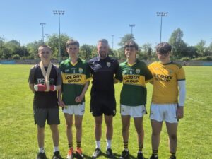 (ii) On Thursday 15th May our A team played in the Central League Division 1 final against Laune Rangers in Ballyrickard. It was a warm night for a game and we instinctively knew this was going to be a tough encounter. Unfortunately, on the morning of the game we learned that two regular A team starters had taken ill and would be unavailable to play. We restructured our forces and, thankfully, our lads settled well in the first half and went into the break with a 10 point lead….1-10 to 0-3. At half-time we warned our boys that the Killorglin lads would have a strong purple patch and how right we were! We could not get a foothold in the 2nd half and our scoring dried up! The Laune Rangers lads were up for everything. Thankfully and with some strong work by our defence we did well to hold the lead until the final whistle. Full time score…AdeS: 1-14; Laune Rangers: 1-13. A nail biter to the end, stress for management and, fortunately, that’s two-in-a-row in this competition! U16-ers: Barry Laide, Ben Litchfield, Conor O’Regan, Danny Lane, David Hobbert, Denis Brassil, Harry Murphy, Jack Delaney, Jamie Ó Cathasaigh, Joe de Barra, Liam Swords, Mark Riordan, Oran O’Donoghue, Ryan O’Carroll, Diarmuid Hennessy, Jayden O’Dowd, Nathan O’Connor, Noah Reidy, Ryan O’Flaherty, Tadhg Somers, Eoin Mangan, Alex O’Flaherty, Fionn Cotter, Hawlie Cotter, Oran O’Regan, Conor Murphy, Dean Courtney, Eliot Calleja, Mark Foley, Séamus Keenan, Seán McCannon, Tom Dawson, Oisín Cotter, Joe O’Halloran, Ediart Topali, David Ahern, Darragh Lyons, Ewan Canty. So, overall, we have to be happy with where the group is at this point in the season. Having both teams in finals is a good return for all the hard work and commitment put in so far this year. Well done, boys and management.