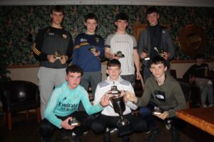 PEIL FAOI 15: What an enjoyable celebration was held in The Kerins-O’Rahilly Club premises on Friday night last! It was the occasion of the presentation of medals and special awards to the boys of the Tralee District Under 15 football team, winners of the Divisional County Championship. The event was hosted by the Tralee Board under the leadership of Seán de Rís (cathaoirleach) and Seán Ó Slatara (rúnaí), both of whom spoke eloquently, glowingly and proudly of a wonderful group of young Tralee players who did themselves, their families and their clubs proud! True champions indeed after a very exciting and very close game v Oileán Ciarraí! Everybody was in agreement that both teams were outstanding in what many thought was one of the best and most exciting finals played i bPáirc Aibhistín de Staic. Yes, it took two excellent panels…Castle Island and Tralee…to produce such an exhibition! Gaelic football at its purest! Future Green‘n’Gold stars on view on both sides, gan aon agó! And now everybody is looking forward to seeing these lads playing at the same high standard in 2023! The John Mitchel, Kerins-O’Rahilly and Austin Stack Clubs can in truth be proud of these lads! The management trio also deserve high praise! Bainisteoir Ed Lacey spoke highly of ‘his boys’…..each player was named and the ‘audience’ of parents, grandparents, siblings and aficionados of the pigskin, was given detailed accounts of the wonderful skills and exploits exhibited by the lads. We were told how they are maturing as players and, níos tábhachtaí fós, as young men who have shown what true dedication and commitment can produce. They are good examples for our town’s younger players! John Brosnan also spoke inspiringly to these young men; he movingly told of his own U15 experience of winning a ‘county medal’ and of its importance to him! ‘Appreciate what you’ve achieved, boys! That medal will be something to savour in years to come,’ he told them. Our own Morgan O’Connell was also an important part the management ‘triumvirate.’ Sea, ocáid dár saol a bhí ann….a night to remember!