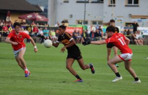 Harry Murphy goaled from a Rory Lynch pass but within a minute Cian MacGearailt pointed for West Kerry. Ryan O’Driscoll had the next two points for Stacks one from a free making it a two point game. Cian MacGearailt with a point restored West Kerry’s lead to three points with six minutes left.