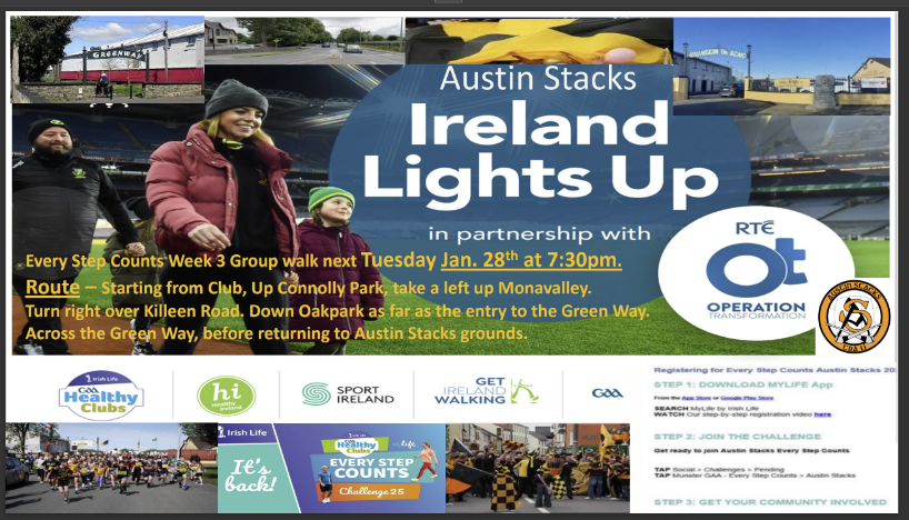 Go to social > challenges > MyLife’s Every Step Counts Challenge + Select “Munster” Province + “Austin Stacks”.