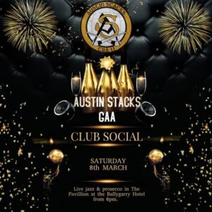 The Austin Stacks club social will take place this Saturday 8th March in Ballygarry Hotel. This is a perfect opportunity for all club members to mingle and celebrate the successful year that Austin Stacks have had. Our Social will kick off with live jazz and a prosecco reception in The Pavilion from 6pm.