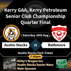 Q/F, Austin Stacks v Rathmore, Sat 30th Aug, 7pm Austin Stacks Park.