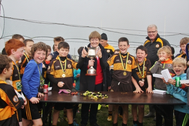 For the third year in a row the tournament started exactly on time and finished 10 mins ahead of schedule- thanks to all our Senior inter Club Referees ( ably assisted by Colm Mangan) and our battalion of club volunteers who “team minded”, kept a top class scoring reporting system ( Anne Heaslip the coordinating Maestro), coordinated parking and organised photographs. Each and every child (and many parents !) were fed and watered with Annette and her brilliant team playing a staring role. The Hynes partnership also did super work – from food purchase right to goalpost transporting (Thanks to John Mitchels for their assistance) as did Adrienne and her invaluable chronicling photo’s.