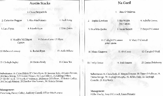 Team: Chloe Fitzpatrick, Catherine Duggan, Alex Mac Namara, Leah Long, Lara Flynn, Niamh Ryan, Erika Jones, Meabh Mc Elligott, Dakota Carter O’Flynn, Rebecca Conway (1-0), Rachel Ryan (0-2), Aoife Dilane (0-1), Clodagh Begley (1-4), Heather Mac Namara (4-2), Ciara Nix. Subs used Clodagh Murray & Roisin Coffey. Subs: Emma Reidy, Chloe Dillon, Ciara Ryan, Jasmine Ryle, Laura Devane, Clara Moran, Vivienne Dineen, Tara Clifford, Ashling O’Shea, Sara Lucid, Nicole O Mahony, Eimear O’Sullivan, Brenda Devane.